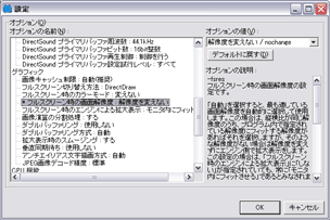 各種項目を選択すると、右の「オプション説明」に、設定内容が表示されます。