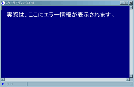 動作不良などでエラーが発生した場合、スクリプトエディタというウィンドウが表示されることがあります。(下記画像の"メイン"部分が"例外通知"となったもの)